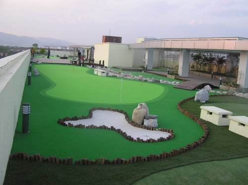 在決定校園屋頂綠化鋪裝的第一步要確定鋪裝的綠化草坪為天然草坪還是人造草坪,人造草坪用作校園屋頂綠化相對(duì)比較簡(jiǎn)單,首先要確定校園屋頂?shù)臉敲媸欠裾麧?,要做好防水,樓面要平整不能有縫隙,不能起沙掉皮等,這樣的基礎(chǔ)上基本都可以做到,那么就可以直接鋪裝人造草坪。